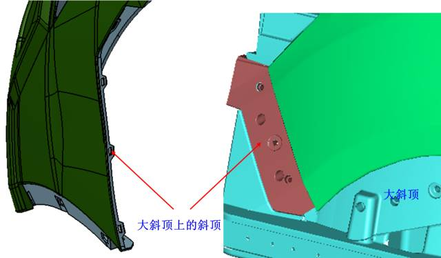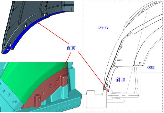 此側倒扣采用斜頂(dǐng)上斜頂(dǐng)的結構(gòu):